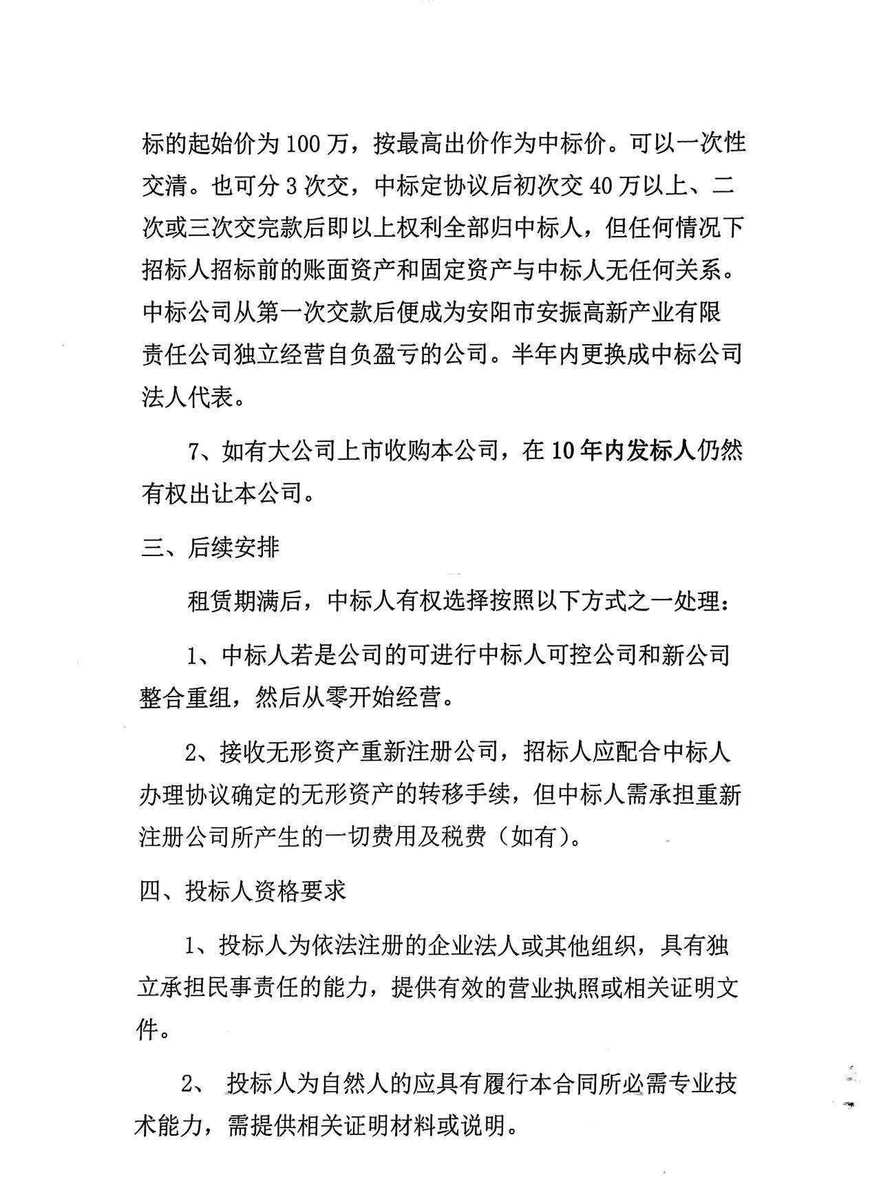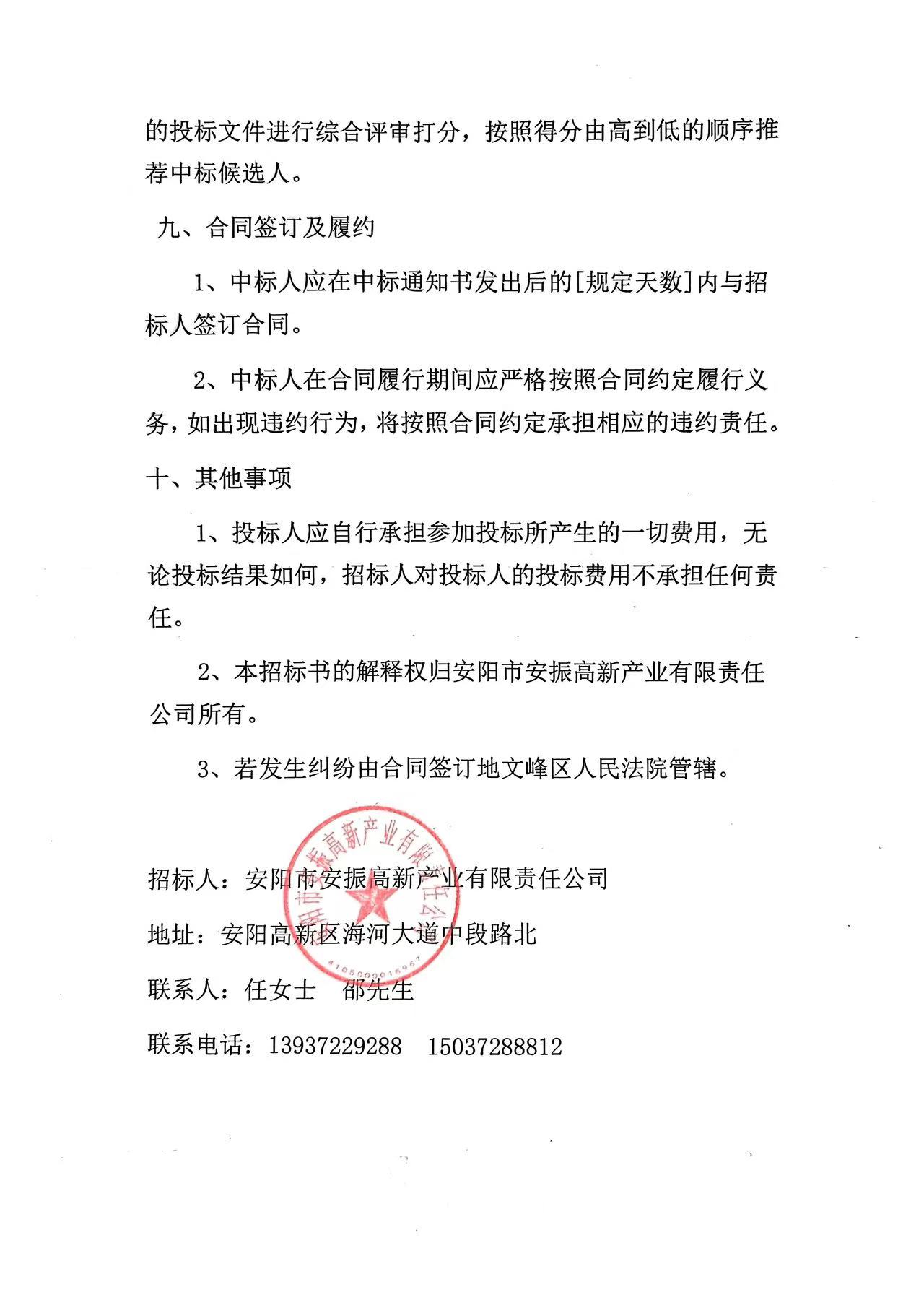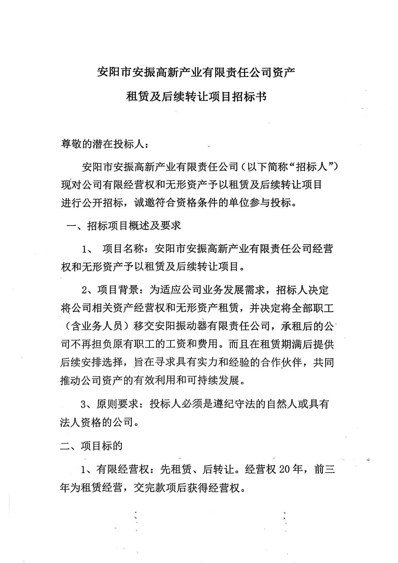 安陽市安振高新產(chǎn)業(yè)有限責(zé)任公司資產(chǎn)租賃及后續(xù)轉(zhuǎn)讓項目招標(biāo)書